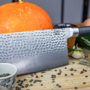 Ontdek de veelzijdigheid en kracht van de Chinees hakmes, of Chukabocho 中華包丁, een onmisbaar hulpmiddel in keukens wereldwijd. Bekend om zijn breed, ultrascherp lemmet. Dit handgemaakte meesterwerk is perfect voor het eenvoudig snijden van grote stukken vlees, het bereiden van spareribs of het hakken van harde groenten, zonder je polsen te vermoeien.