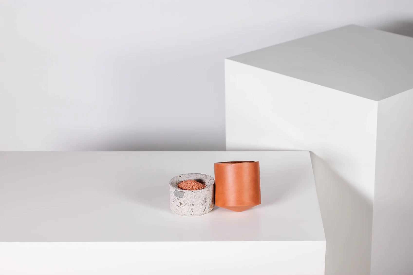 Elke kleibeker rust op een basis van cantera-steen in een aangepaste kleur. Deze basis kan ook dienen als klein serveerschaaltje en is ideaal voor wormenzout , citruspartjes , smaakzouten of kleine hapjes.