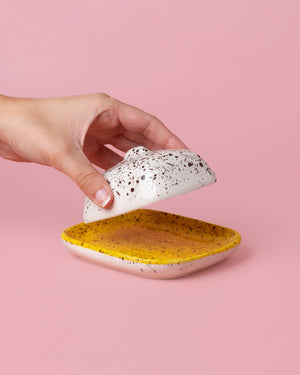 Handgemaakt in Spanje, waarbij elk stuk uniek is dankzij subtiele kleurvariaties en gemaakt met milieuvriendelijke, voedselveilige glazuren zonder cadmium en lood.