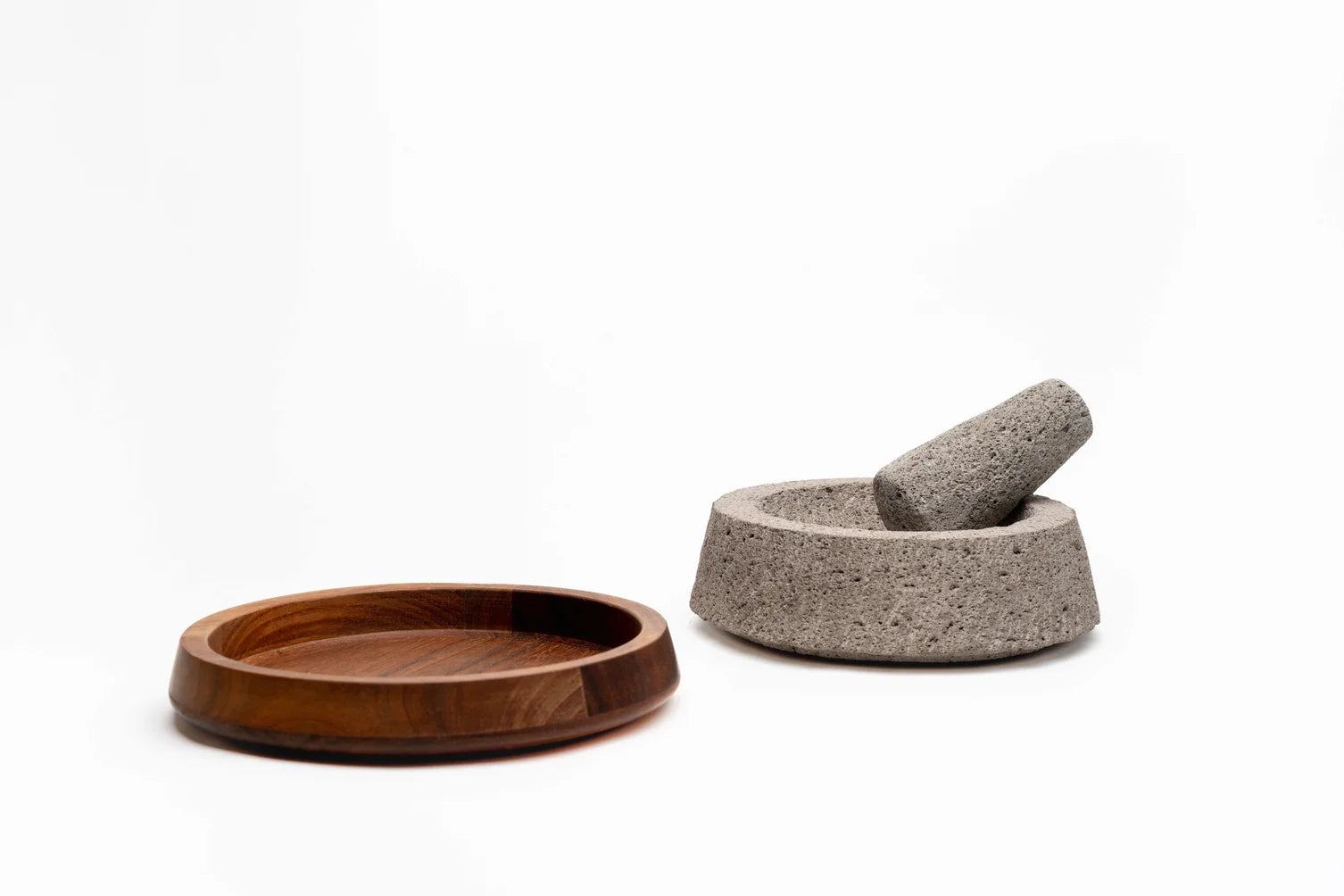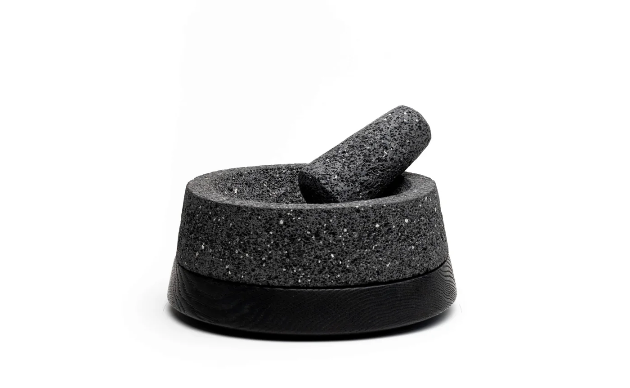 Ervaar het rijke erfgoed van de traditionele Mexicaanse keuken met deze opniejojojojojouw uitgevonden molcajete. Door authentieke functionaliteit te combineren met modern design is dit stuk meer dan alleen een gereedschap, het is een middelpunt in de keuken. De vulkanische stenen maalkom rust op een uniek vervaardigde houten basis die ook dienstdoet als tortillawarmer, wat zorgt voor ongeëvenaarde veelzijdigheid en elegantie.